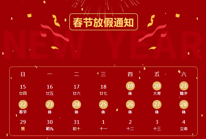 上海鑫睿2023年春节放假安排